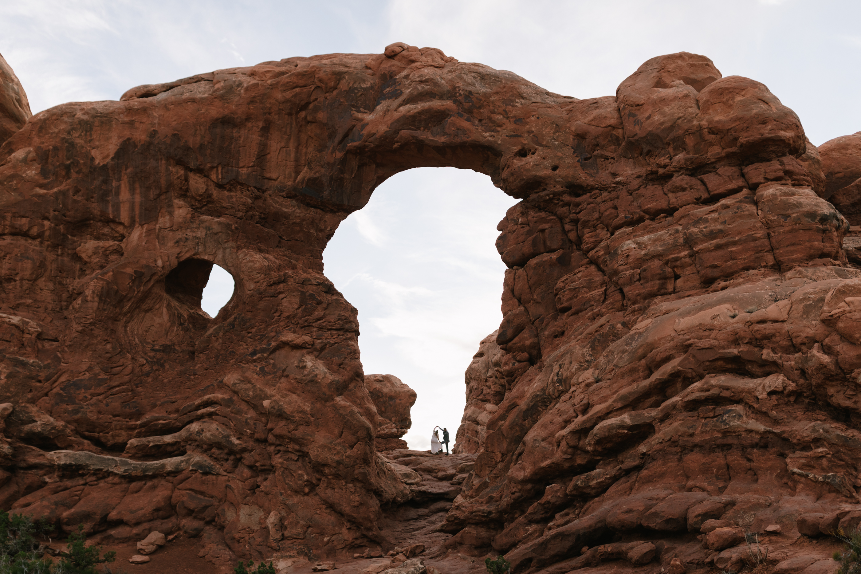 When Krystle and Michael, an out-of-state couple, chose to elope in Utah, they turned to us for guidance on capturing the perfect moments in such a breathtaking location. With just five people present—the couple, their two best friends, and the officiant—we knew the importance of making every shot count. Drawing on our expertise, we led them to the most stunning photo spots in the Moab Desert, ensuring their vows were framed by the awe- inspiring red rock and iconic arches.